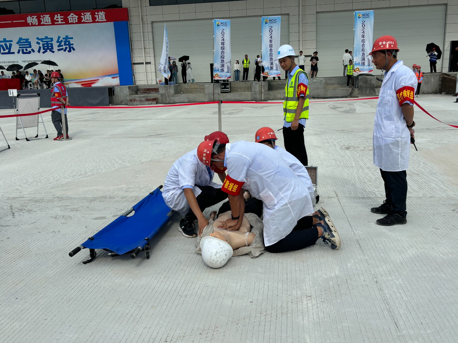 本次活動(dòng)分為模板支撐坍塌、消防應(yīng)急救援以及施工現(xiàn)場安全體驗(yàn)三個(gè)場景。在應(yīng)急演練中,面對險(xiǎn)情,現(xiàn)場總指揮第一時(shí)間啟動(dòng)應(yīng)急救援預(yù)案,各應(yīng)急小組迅速反應(yīng),按照應(yīng)急預(yù)案的要求進(jìn)行疏散撤離、維持秩序、醫(yī)療救治等。全面展示了應(yīng)急救援決策、調(diào)度、搶險(xiǎn)、人員轉(zhuǎn)移等應(yīng)急過程,參演各方分工有序、配合密切,迅速并成功完成演練。整場演練緊張有序,達(dá)到了預(yù)期目的。